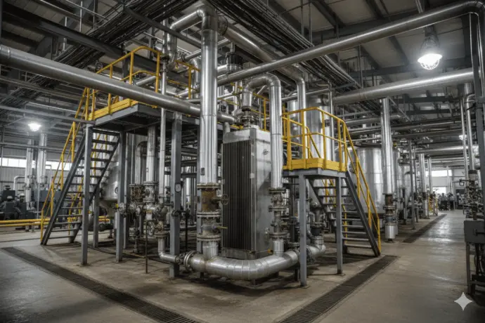 Lò hơi công nghiệp hiện đại, cung cấp hơi nước cho các quy trình sản xuất và tiệt trùng.